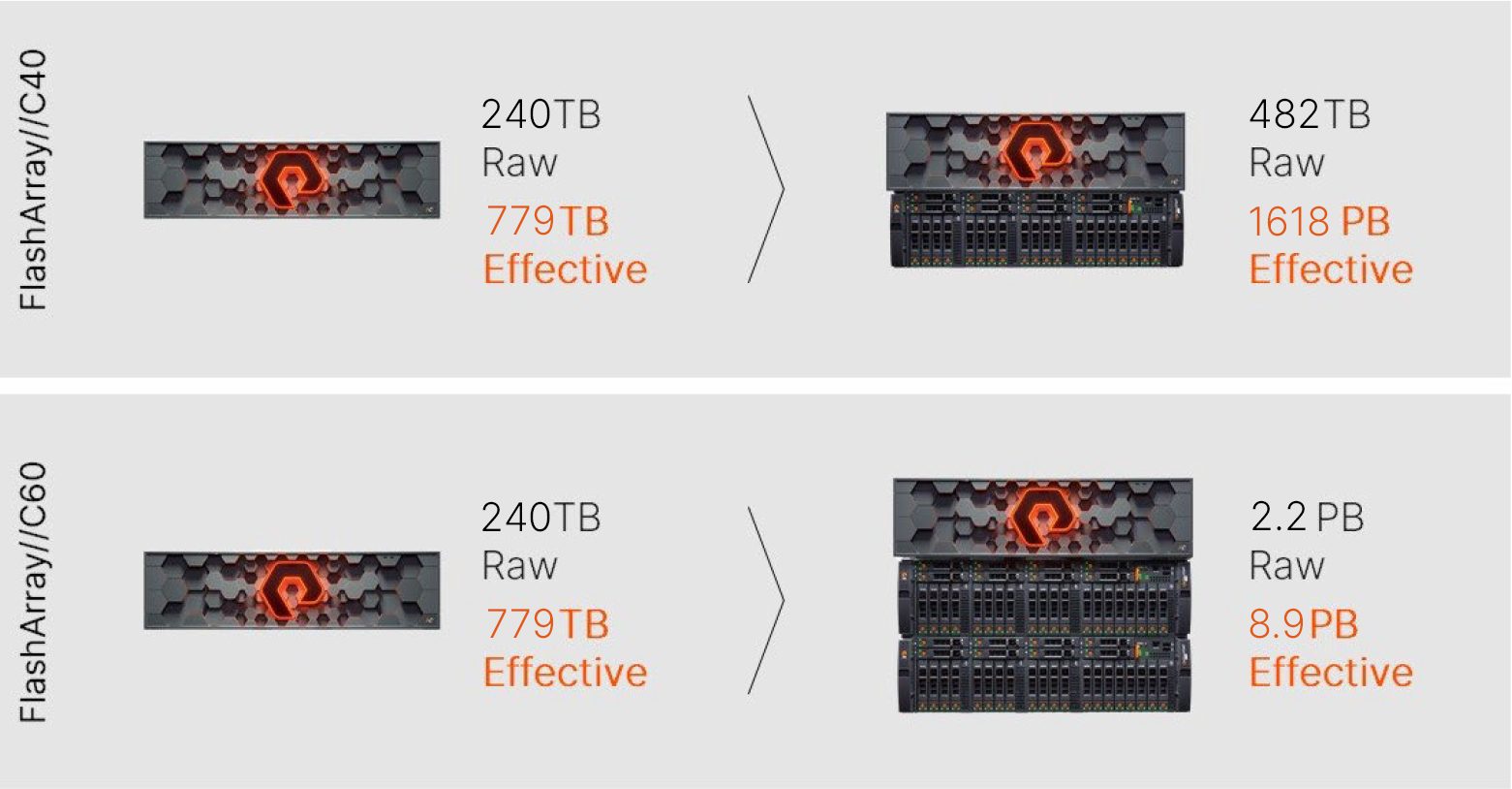 图2:FlashArray//C40和FlashArray//C60容量扩展