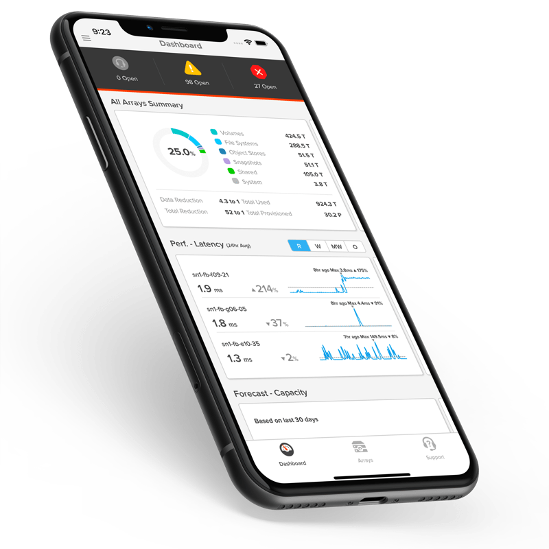 Pure1 provides simple cloud-based management and effortless predictive sup-port. With Pure1 Meta™, predictive intelligence helps to resolve potential issues and optimize your workloads, supporting our vision for self-driving storage.