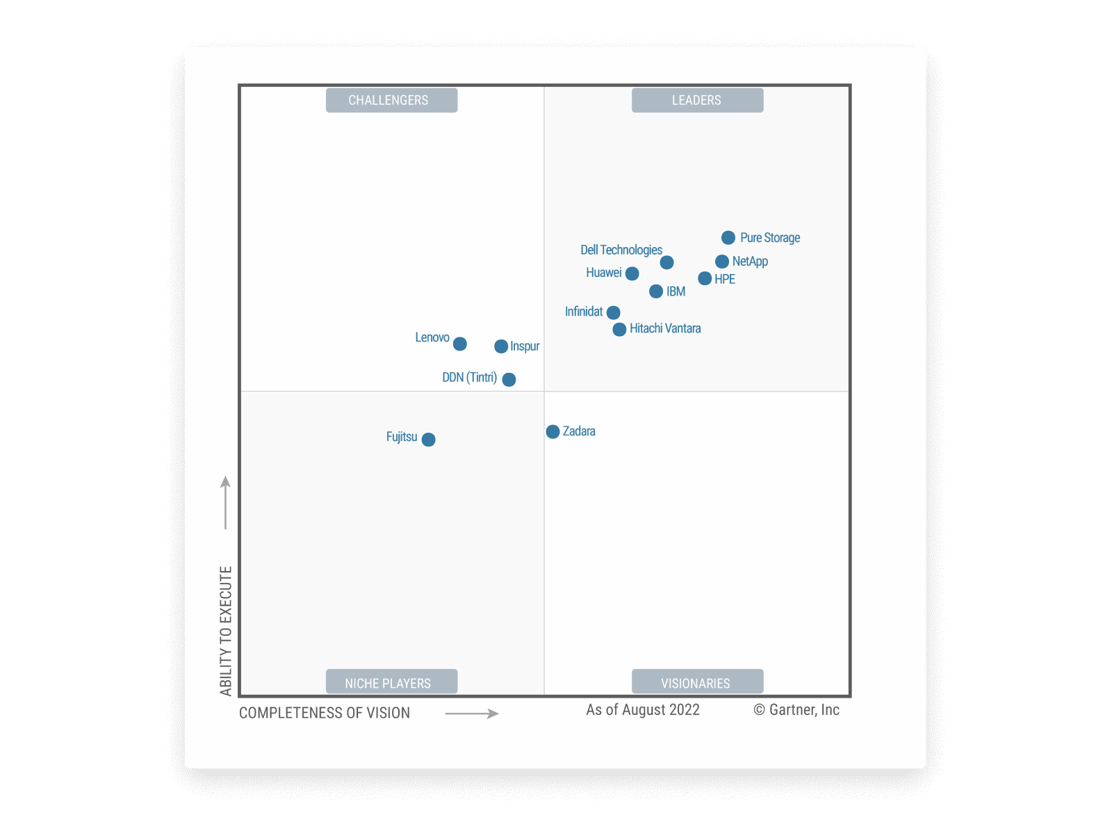了解为什么P爱游戏虚拟体育ure 爱游戏ayx双赢彩票Storage连续九年被评为魔力象限™领导者。在2022年Gartner®主存储魔法象限™中,我们在执行能力方面排名最高,在愿景完整性方面连续第三年排名最远